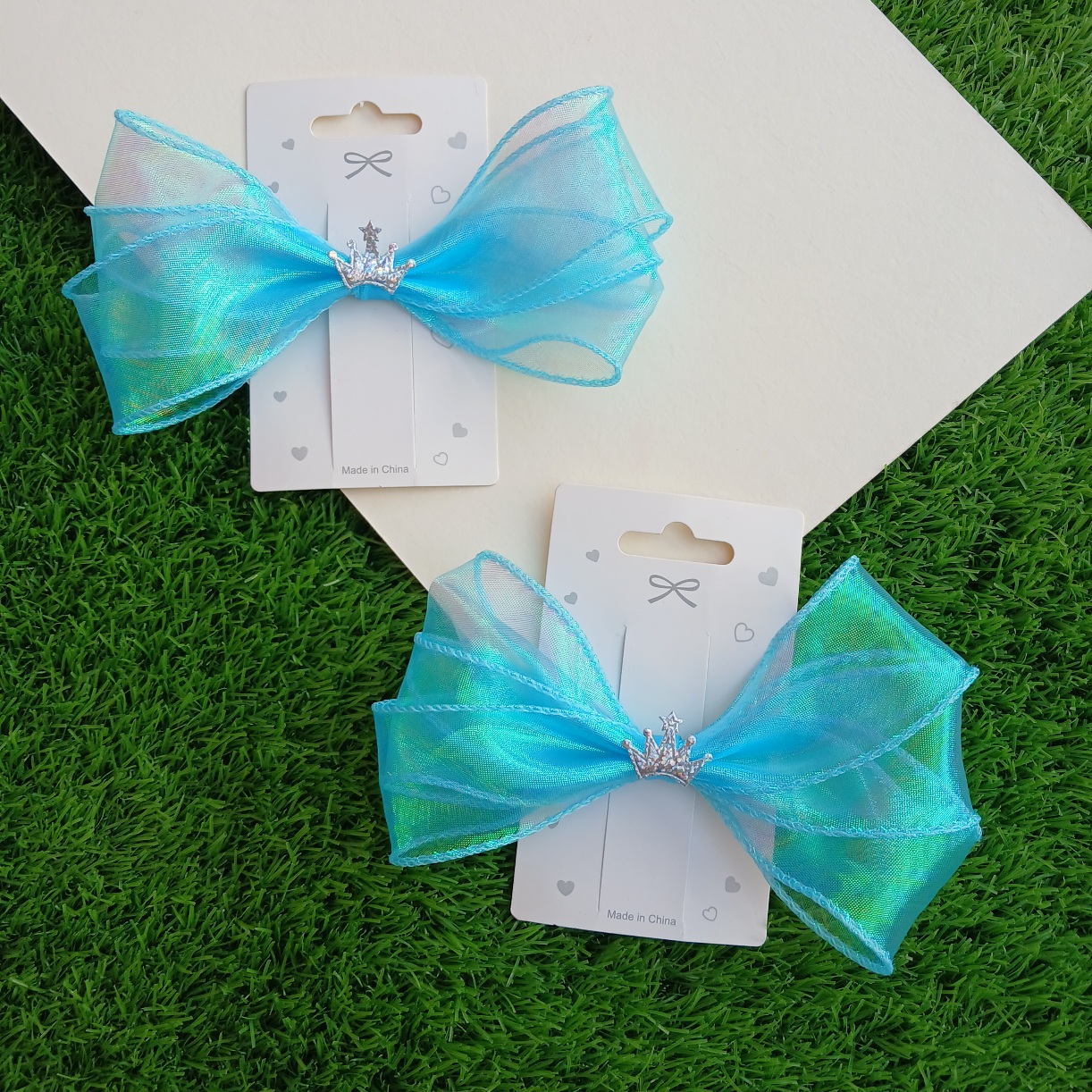 It’s a ice blue hairbow with alligator clip at the back and crown on top. Quantity: Sold as single piece. Size: 6 inch.