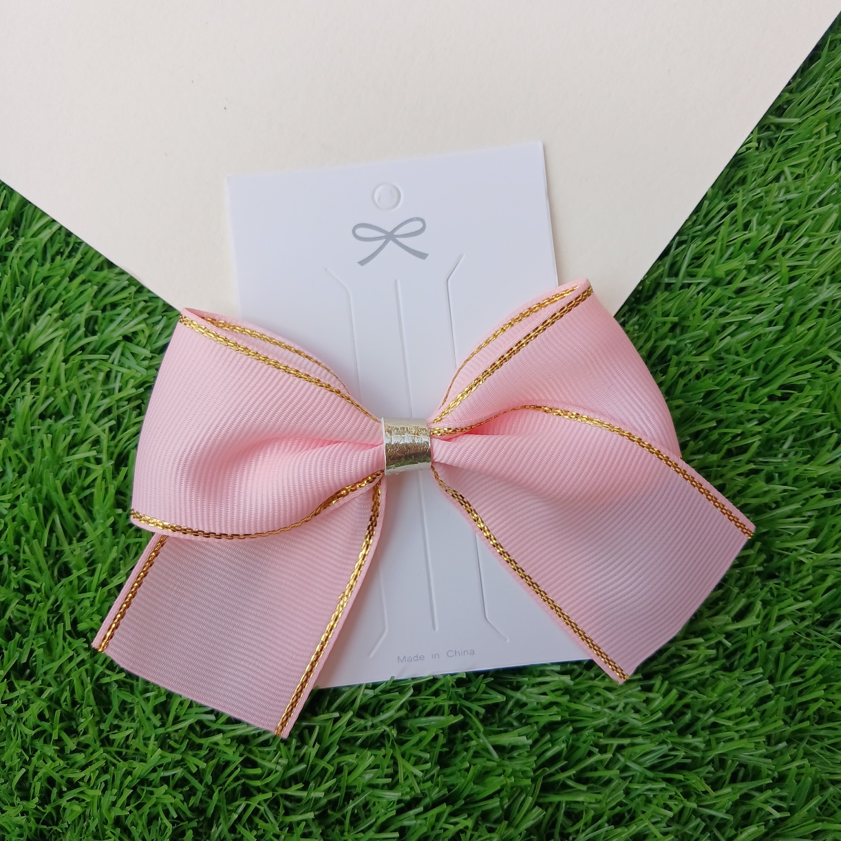 Light pink petal bow with alligator clip at the back. Size: 4 inch.