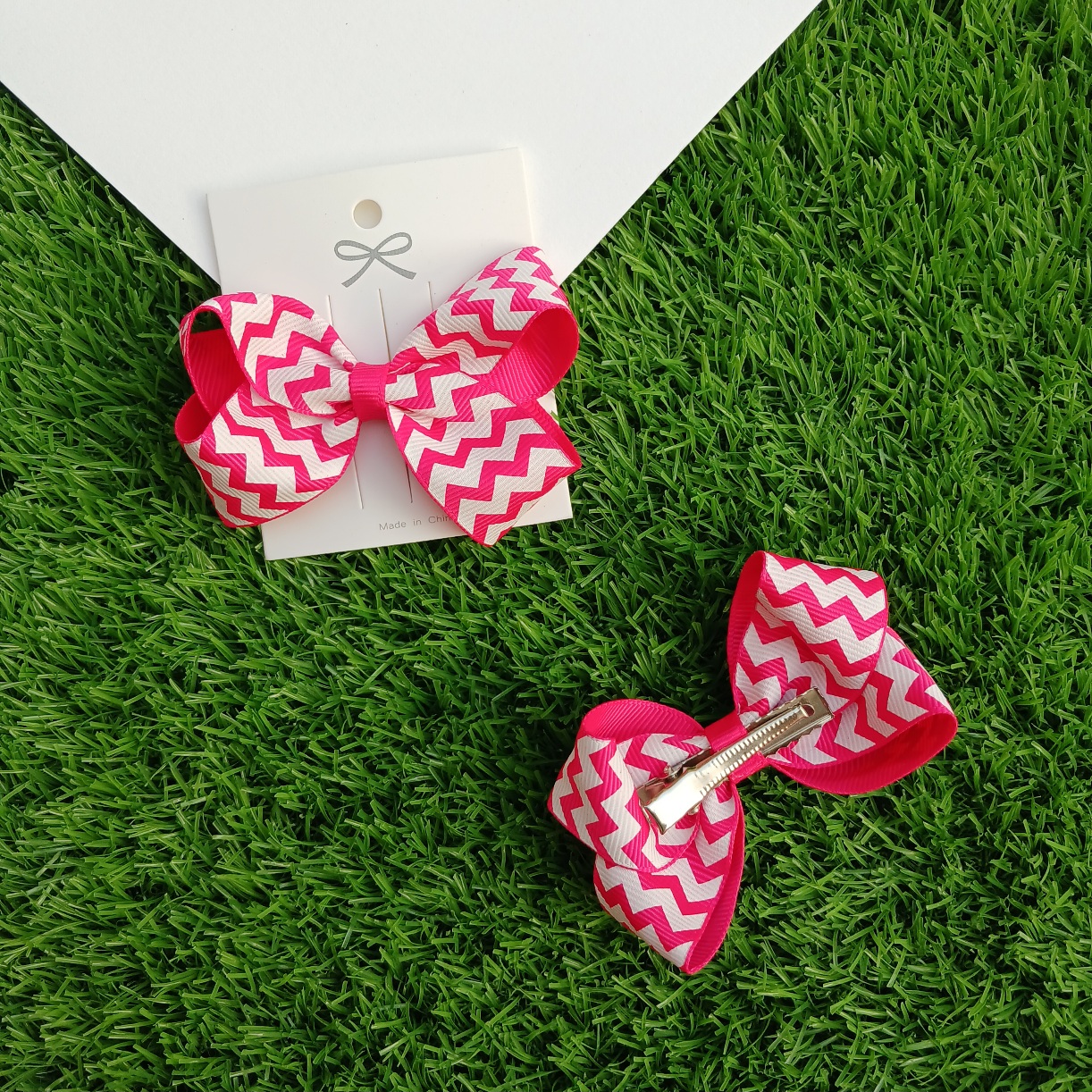 Mini pink color zigzag bow for little ones. Size: 3 inches. Quantity: Sold as single piece.