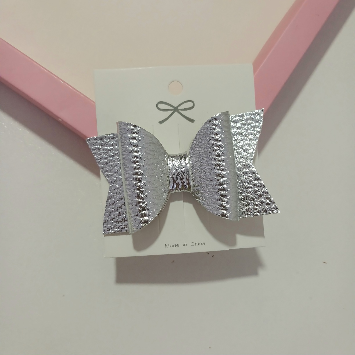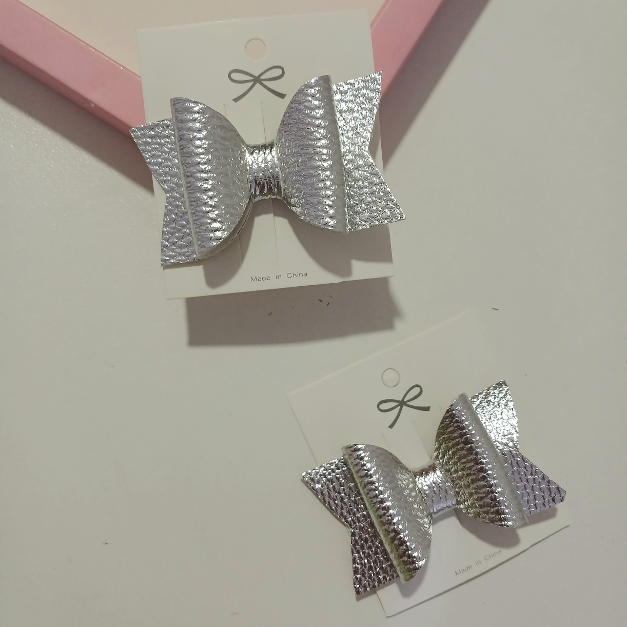 Mini silver bow with alligator clip at the back. Size: 2.5 inch Quantity: Sold as a single piece.