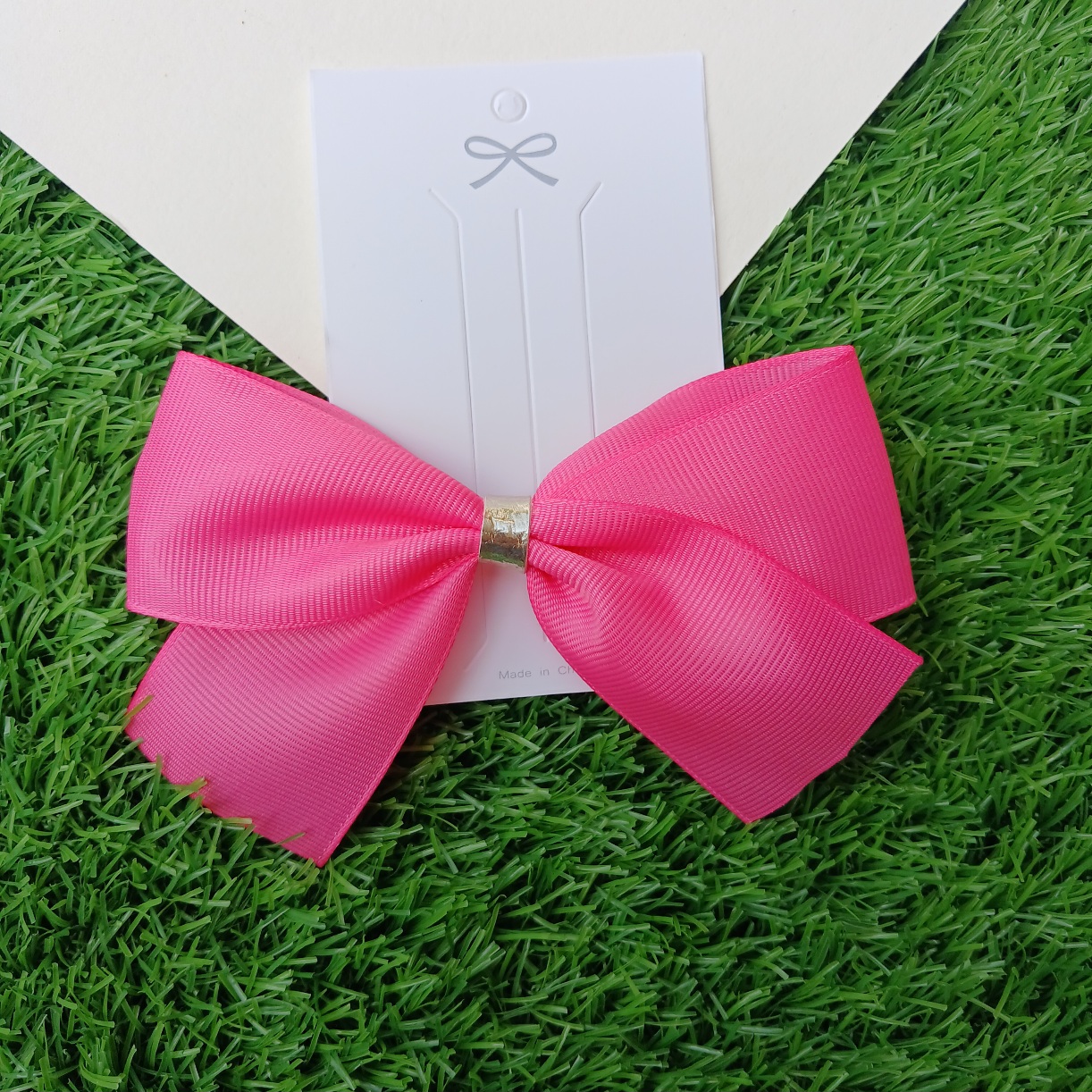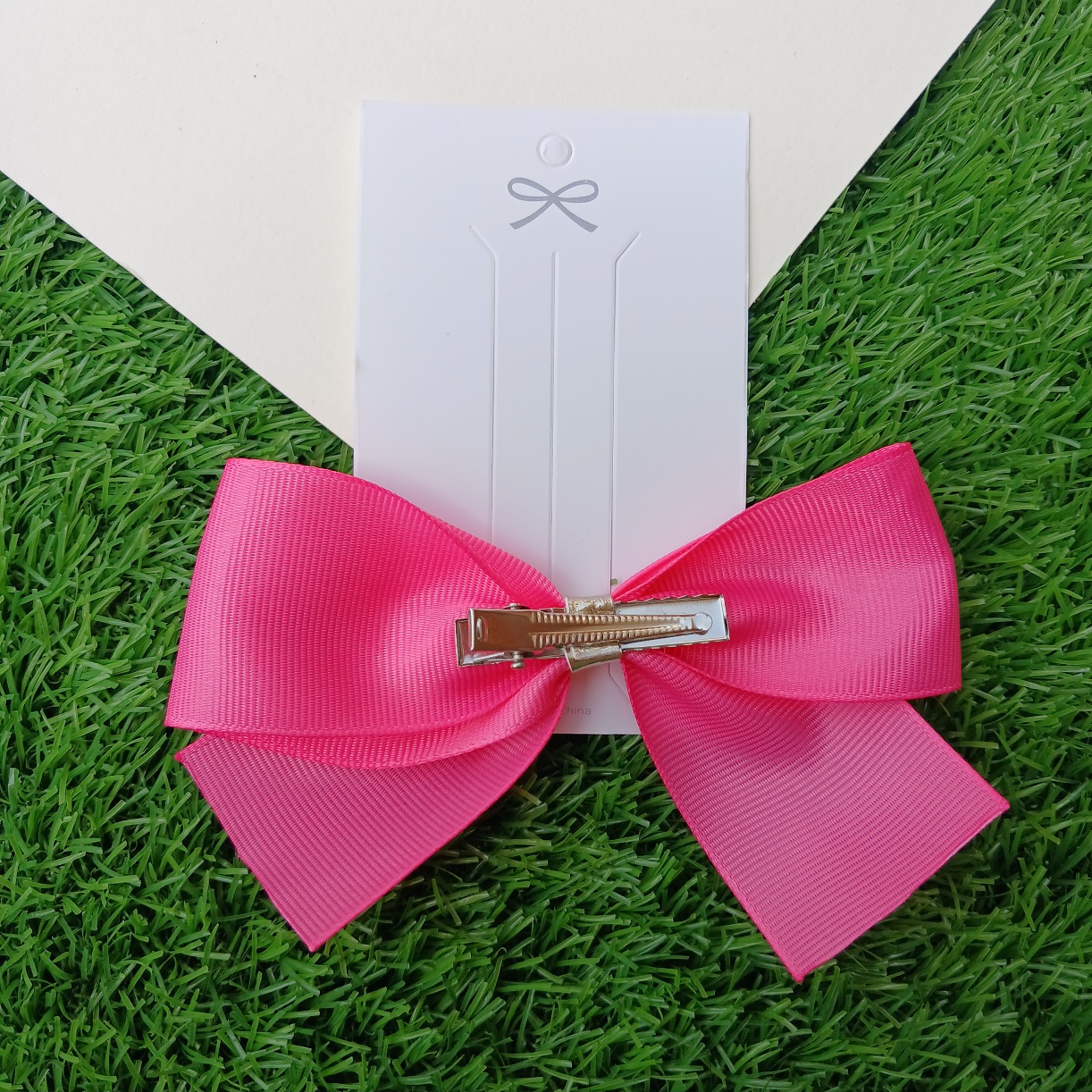 Pink petal bow with alligator clip at the back. Size: 4 inch.
