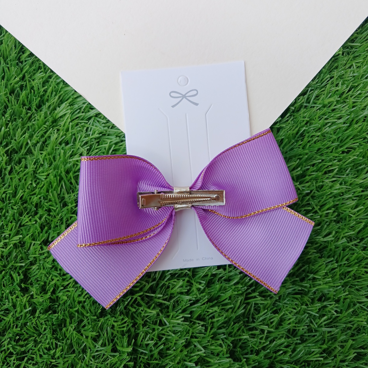 Purple petal bow with alligator clip at the back. Size: 4 inch.