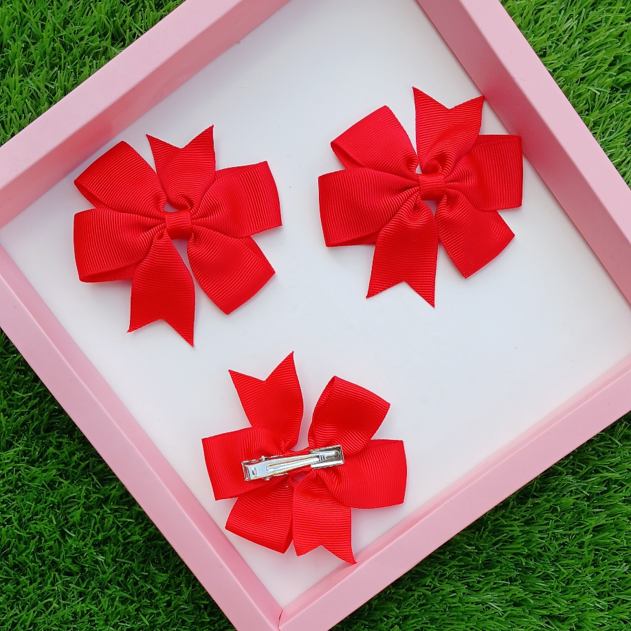 Red plain bow with alligator clip at the back. Size: 3 inch.