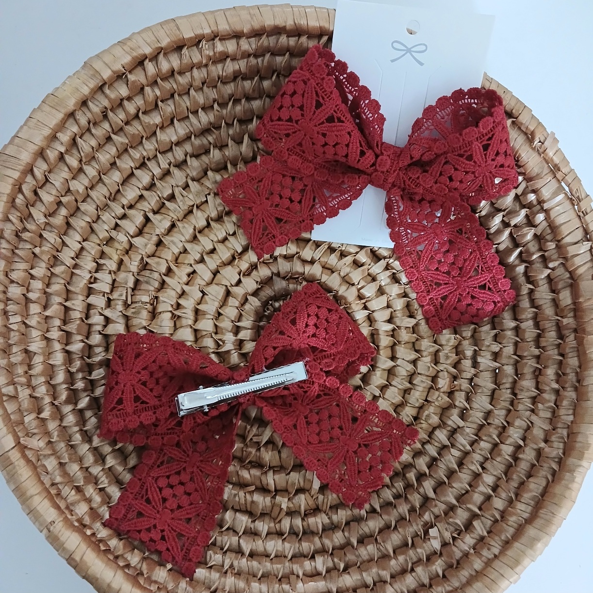 Vintage bow with alligator clip at the back. Size: 4.5 inches Quantity: Sold as single piece.